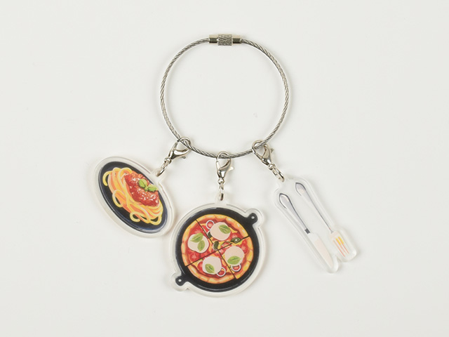 | 特徴 | アクリルキーホルダーのパーツをおしゃれな”ワイヤーチャーム”でつないだスタイリッシュなデザインが魅力です。