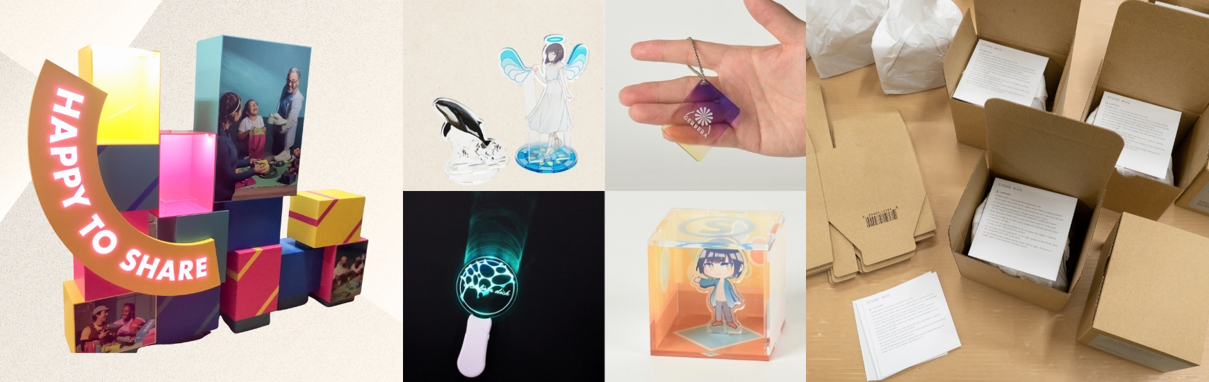 アスプルのグッズ事業は、アクリルを中心としたキャラクターグッズ・ノベルティ製品の企画・製造を行っています。アクリルキーホルダーやアクリルスタンドなどの定番グッズに加え、バッグなどの異素材グッズにも対応し、小ロットから大量生産まで柔軟に対応できる体制を整えています。 アスプルのグッズ製造は、ただ作るだけではなく、「仕上がりの美しさ」「納品品質」「安心感」を重視した“選ばれ続けるアクリル工場の品質”が特徴です。国内自社工場と提携工場を組み合わせ、お客様のスケジュール・数量・品質基準に合わせた最適な生産体制をご提案します。 特徴1:国内工場の高品質 × 大量生産 アスプルは、自社工場でレーザー加工・…